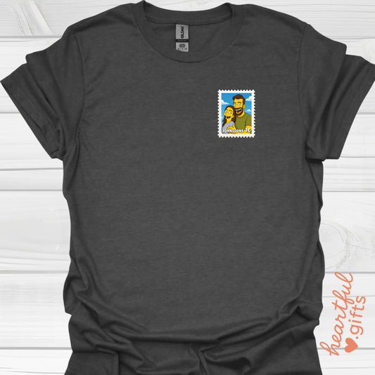 Simpsons style stamp custom print t-shirts